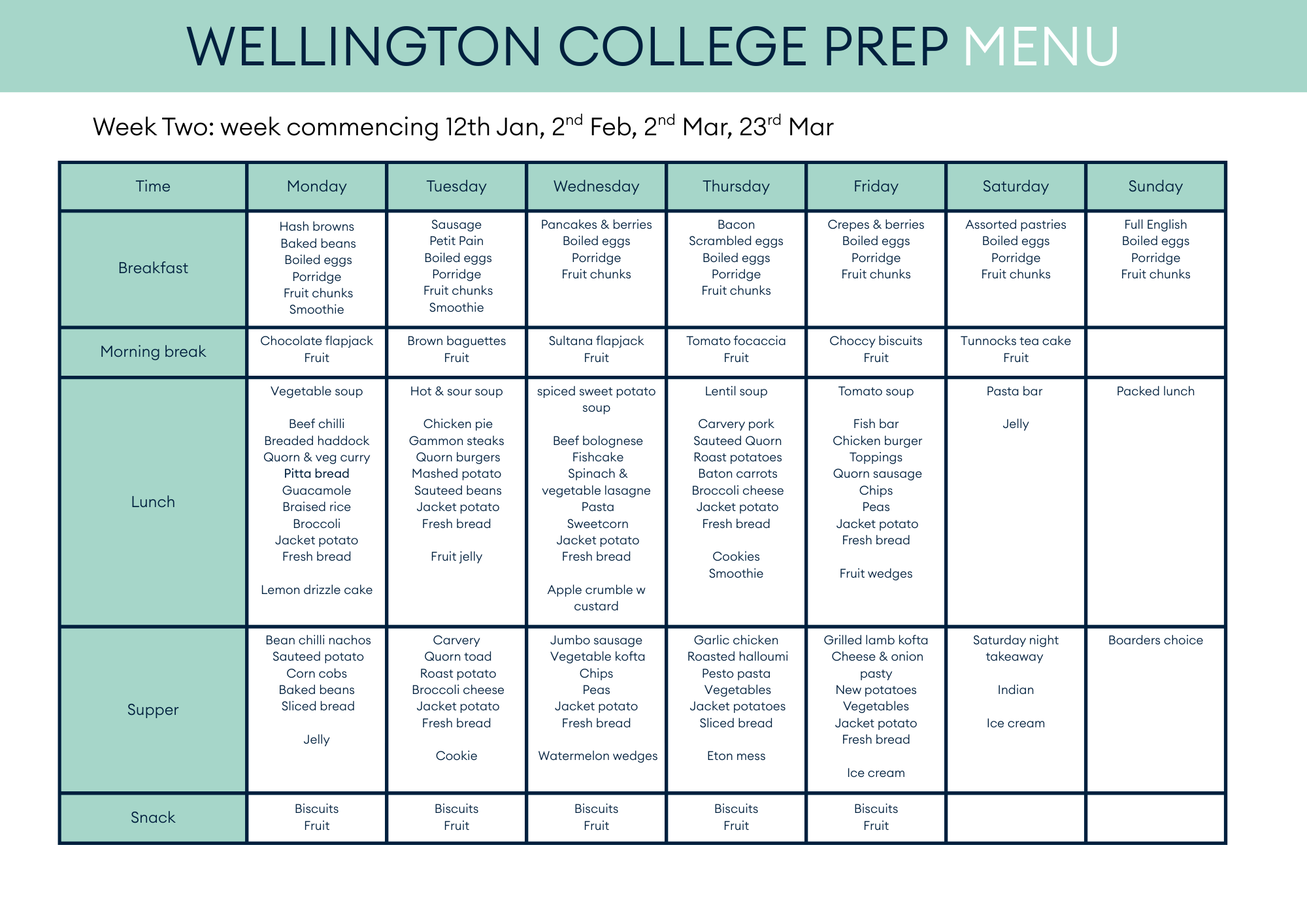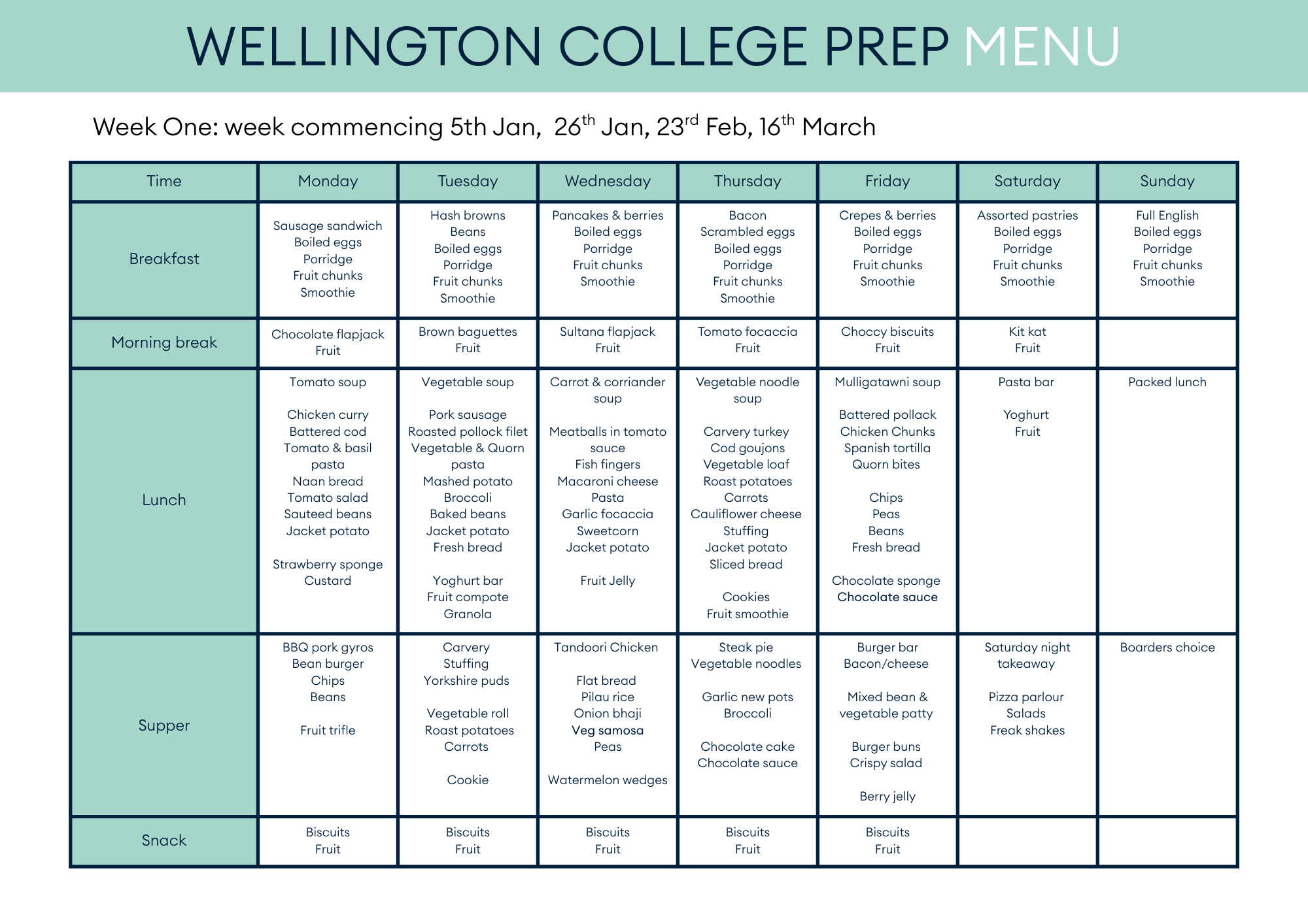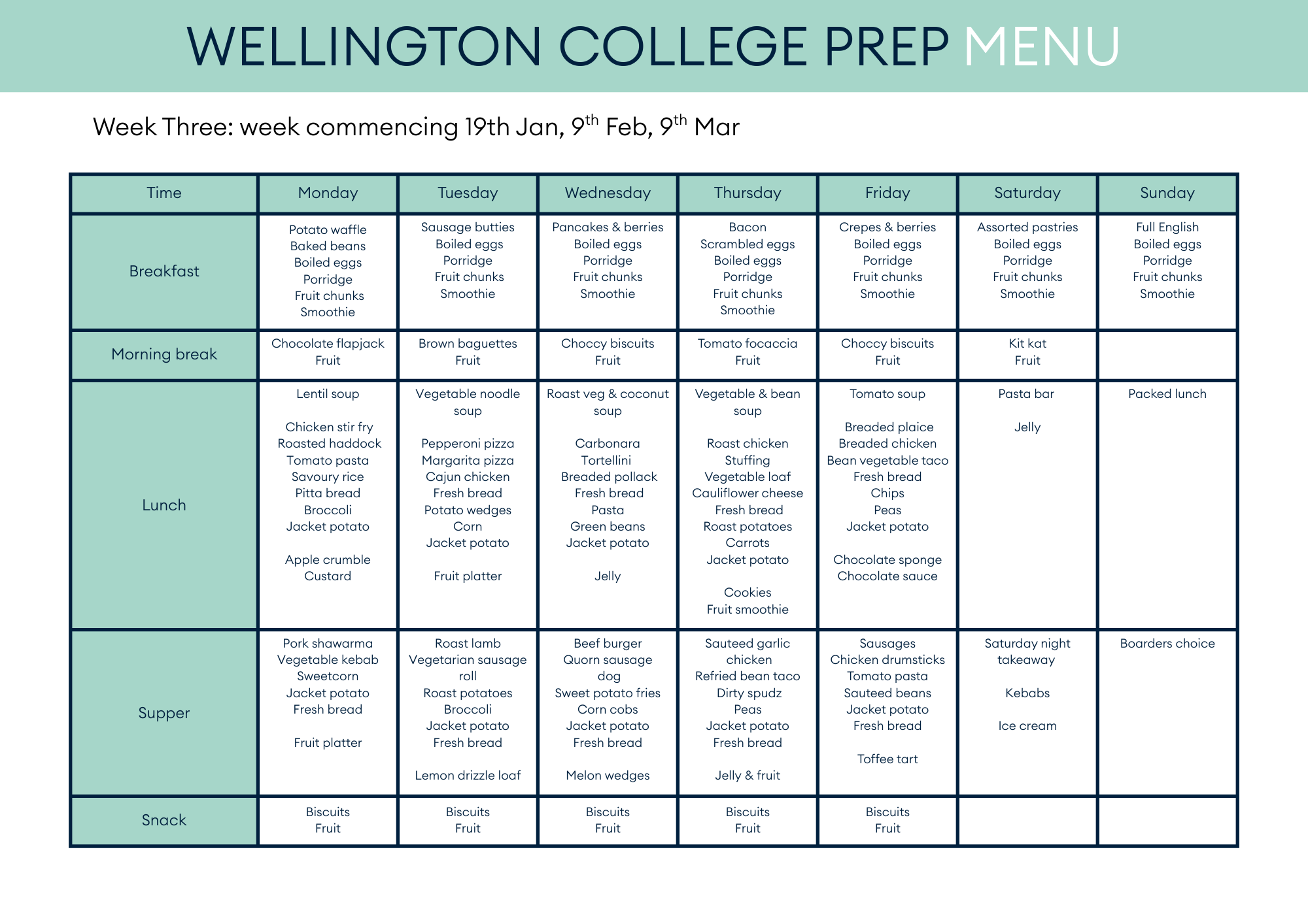 Our menus work on a three weekly rotation.
